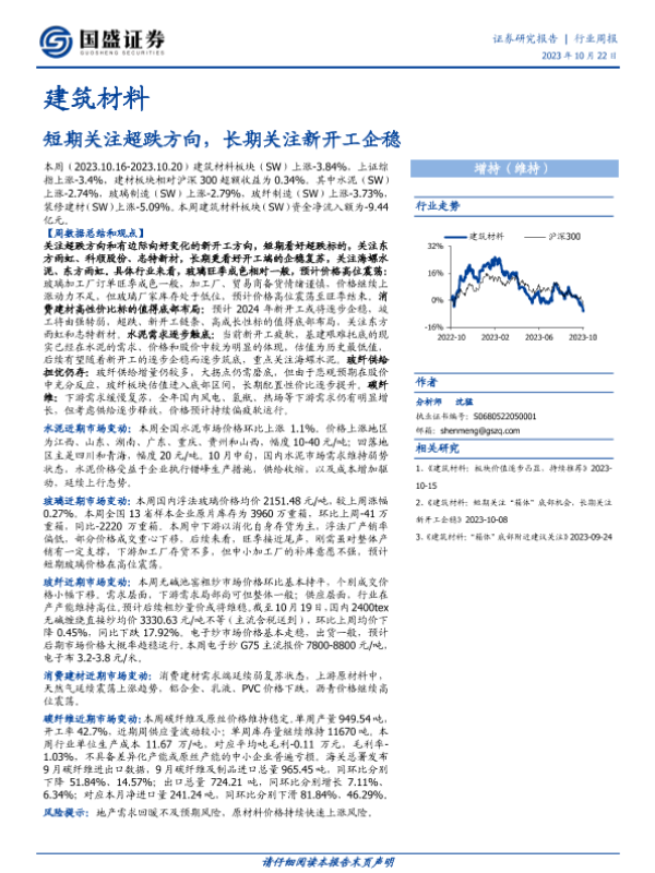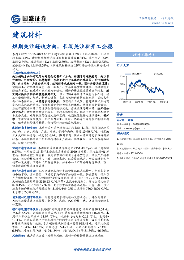 【国盛证券】【20231022】建筑材料行业周报:短期关注超跌方向,长期关注新开工企稳-18页