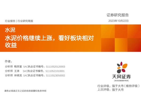 【天风证券】【20231022】水泥行业研究周报:水泥价格继续上涨,看好板块相对收益-21页