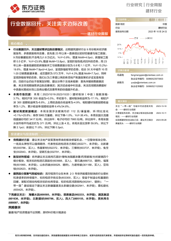 【东方证券】【20231024】建材行业周报:行业数据回升,关注需求边际改善-17页