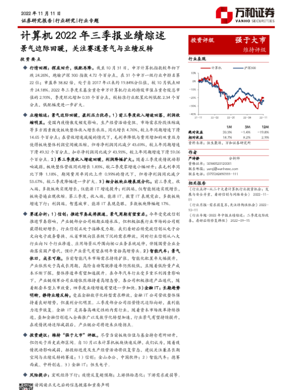 【万和证券】【20221111】计算机2022年三季报业绩综述:景气边际回暖,关注赛道景气与业绩反转-16页