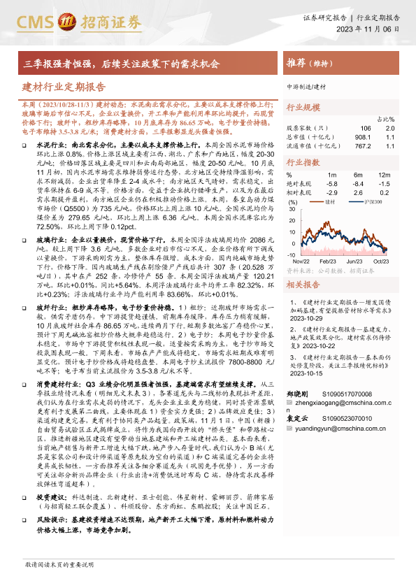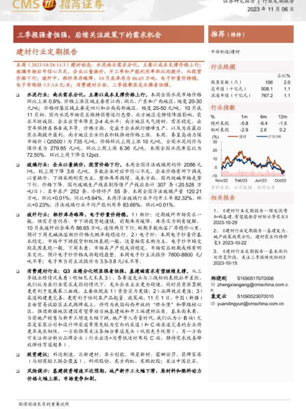 【海通证券】【20231106】建材行业定期报告:三季报强者恒强,后续关注政策下的需求机会-28页