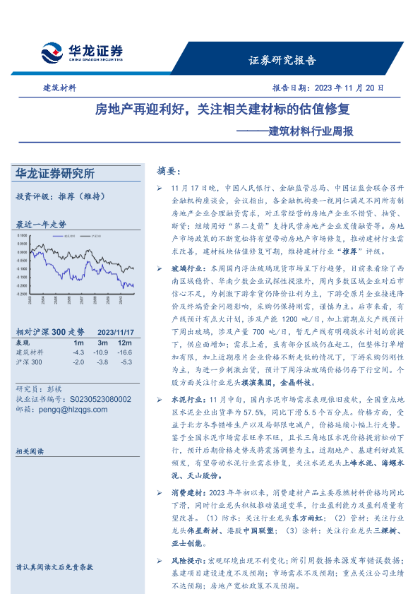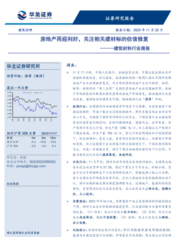 【华龙证券】【20231120】建筑材料行业周报:房地产再迎利好,关注相关建材标的估值修复-16页