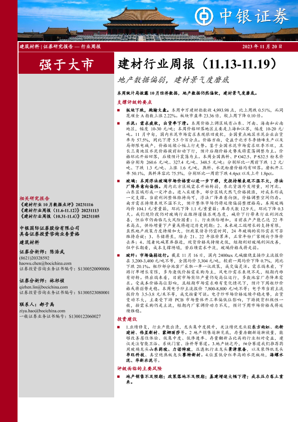 【中银证券】【20231120】建材行业周报:地产数据偏弱,建材景气度磨底-19页