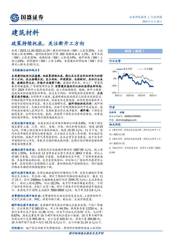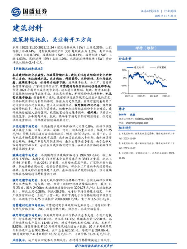 【国盛证券】【20231126】建筑材料行业周报:政策持续托底,关注新开工方向-18页