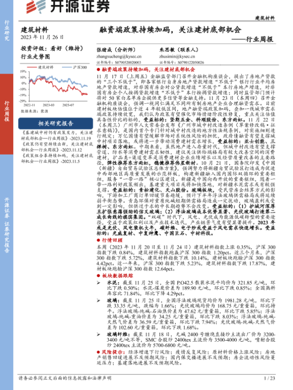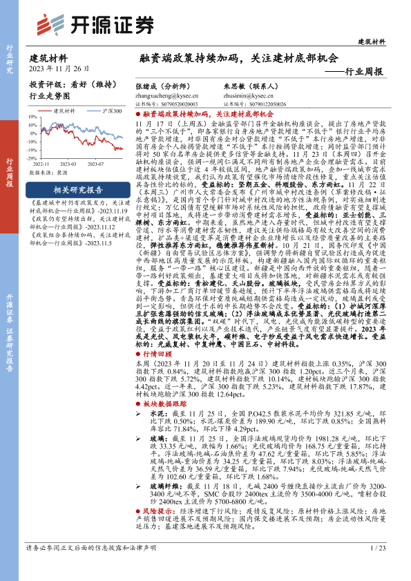 【开源证券】【20231126】建筑材料行业周报:融资端政策持续加码,关注建材底部机会-23页