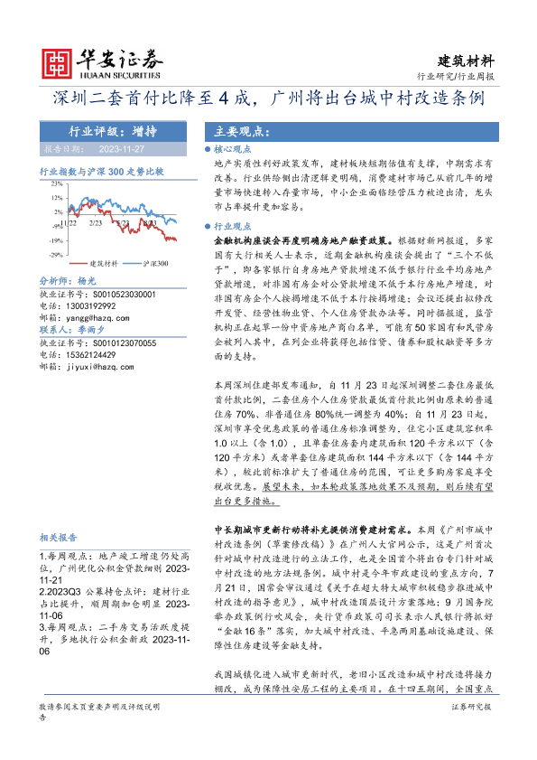【华安证券】【20231127】建筑材料行业周报:深圳二套首付比降至4成,广州将出台城中村改造条例-23页