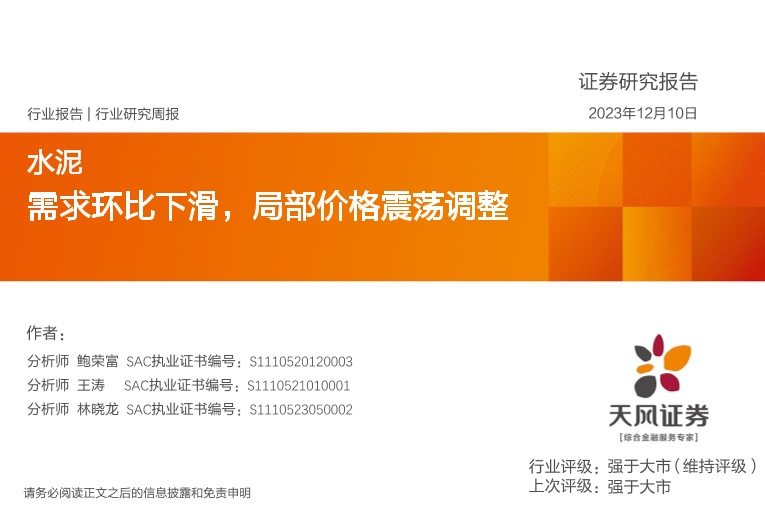 【天风证券】【20231210】水泥行业研究周报:需求环比下滑,局部价格震荡调整-21页