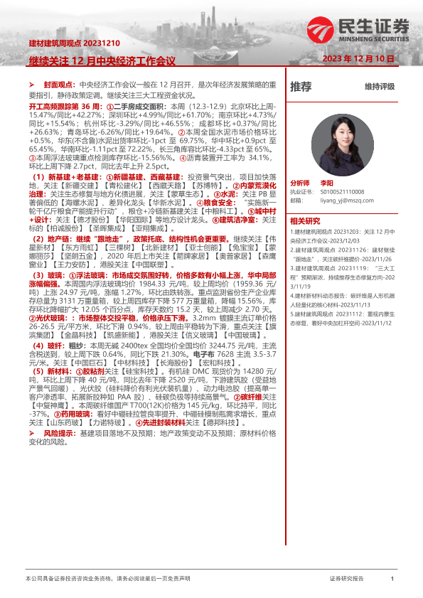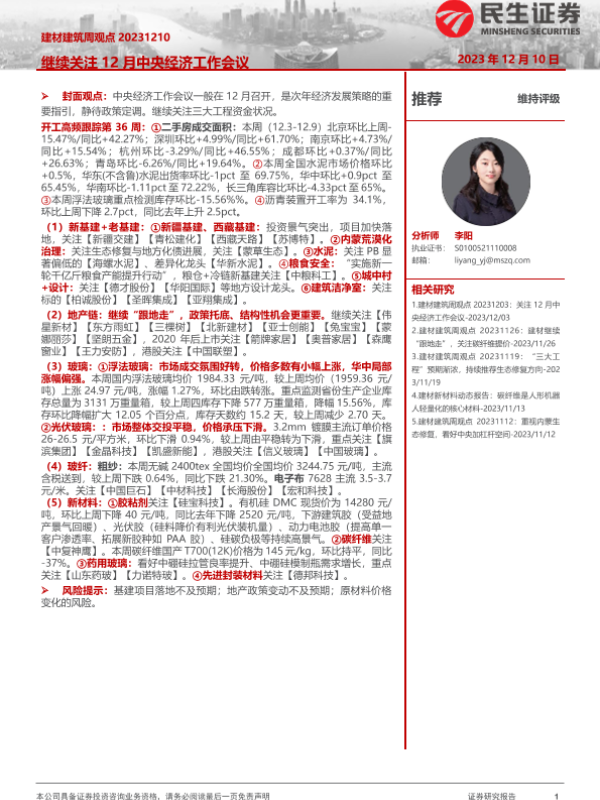 【民生证券】【20231210】建材建筑周观点:继续关注12月中央经济工作会议-22页
