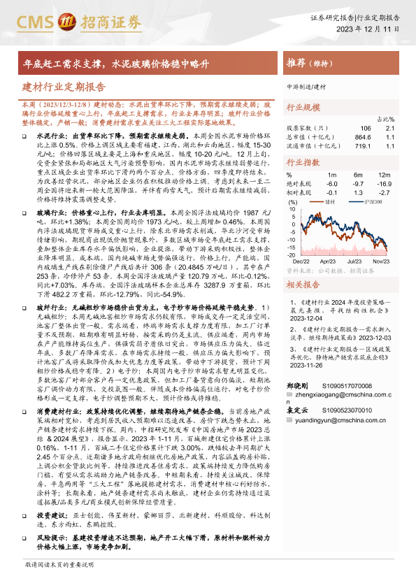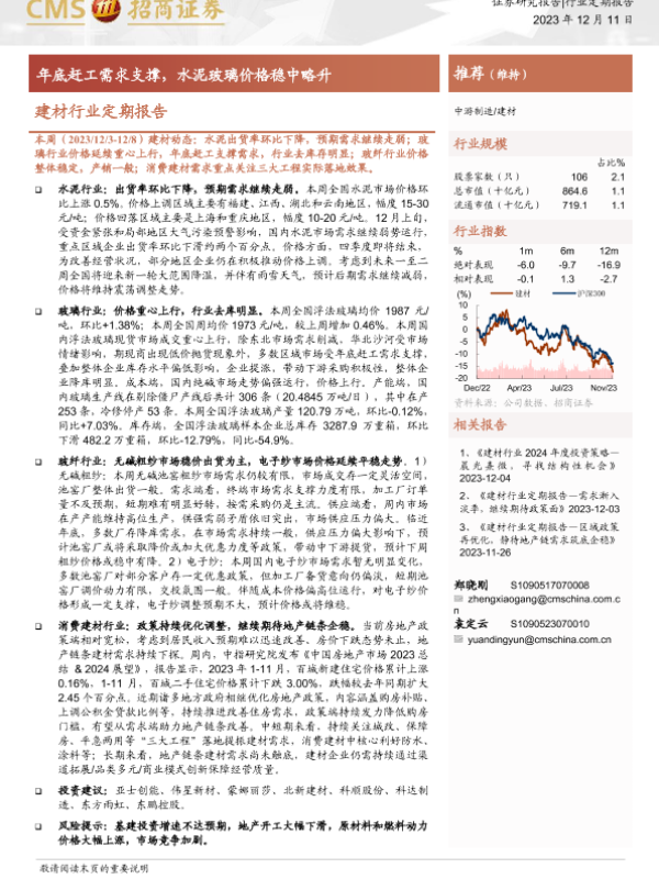 【海通证券】【20231211】建材行业定期报告:年底赶工需求支撑,水泥玻璃价格稳中略升-21页
