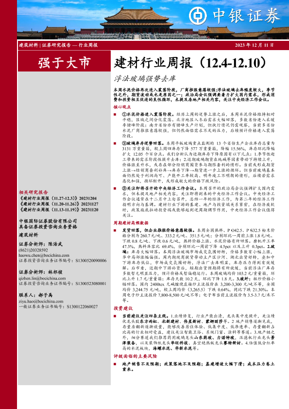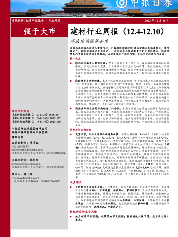 【中银证券】【20231211】建材行业周报:浮法玻璃强势去库-19页
