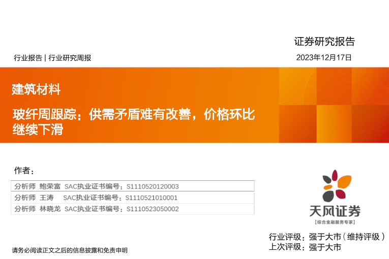【天风证券】【20231217】玻纤周跟踪:供需矛盾难有改善,价格环比继续下滑-19页