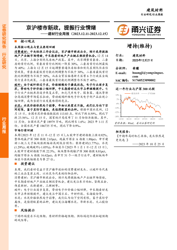 【甬兴证券】【20231221】建材行业周报:京沪楼市新政,提振行业情绪-11页