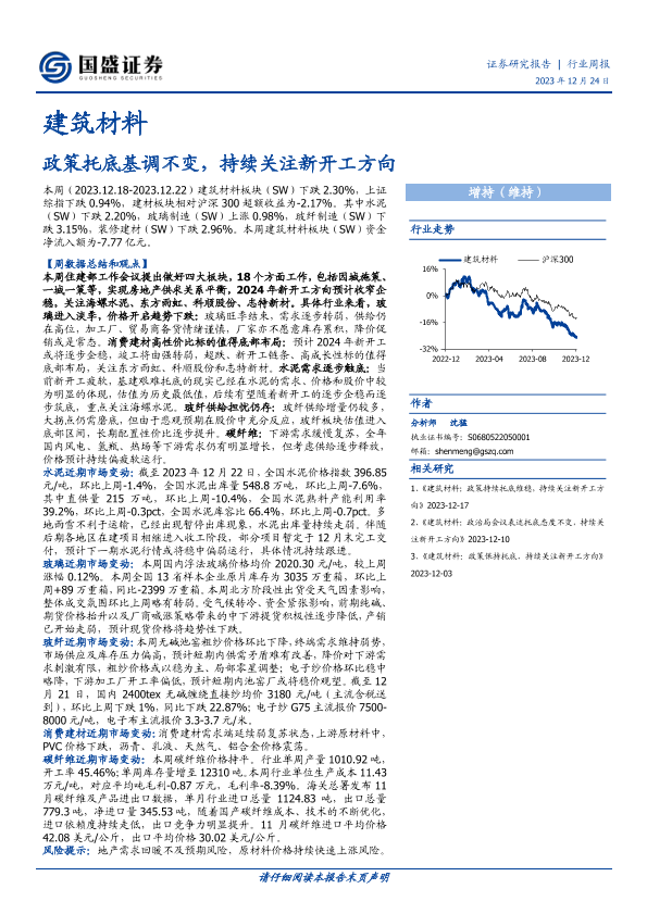 【国盛证券】【20231224】建筑材料行业周报:政策托底基调不变,持续关注新开工方向-18页