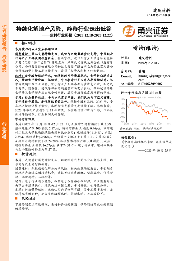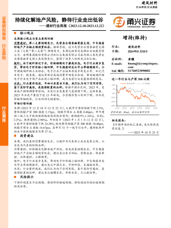 【甬兴证券】【20240103】持续化解地产风险,静待行业走出低谷-11页