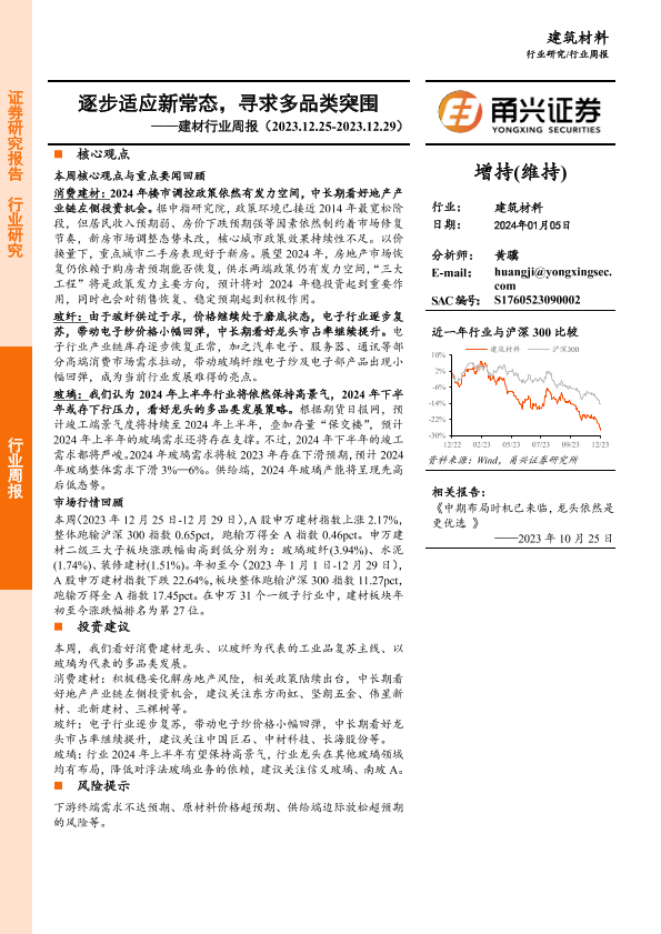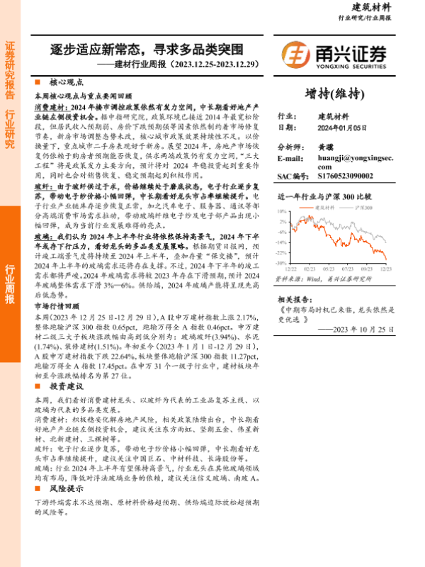 【甬兴证券】【20240105】建材行业周报:逐步适应新常态,寻求多品类突围-12页