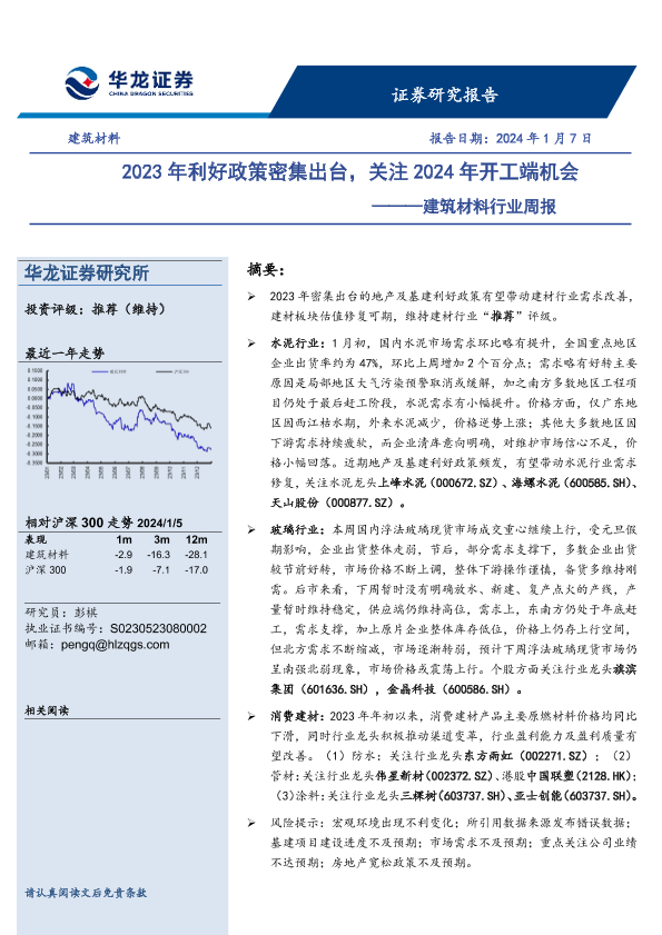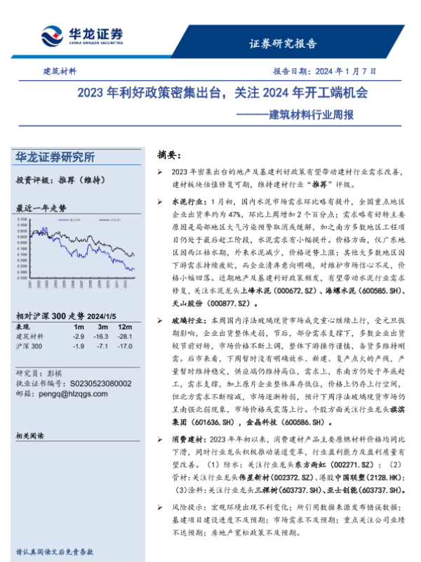 【华龙证券】【20240107】建筑材料行业周报:2023年利好政策密集出台,关注2024年开工端机会-15页