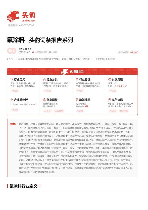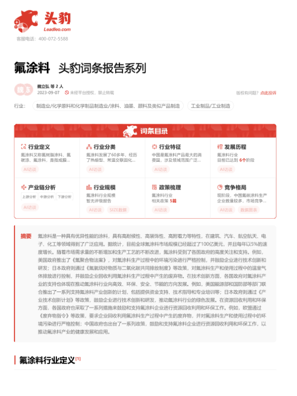 【头豹研究院】【20230907】氟涂料 头豹词条报告系列-22页