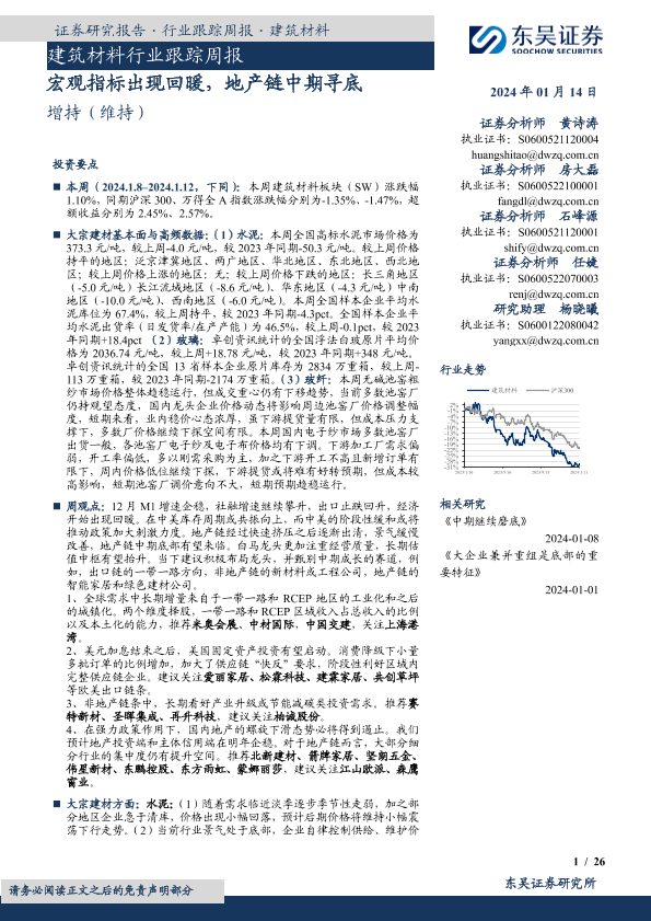 【东吴证券】【20240114】建筑材料行业跟踪周报:宏观指标出现回暖,地产链中期寻底-26页
