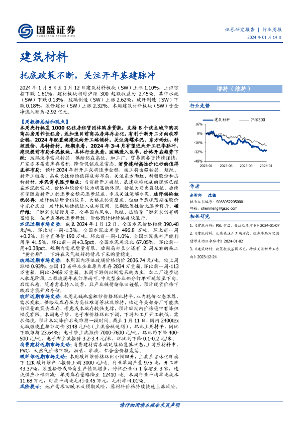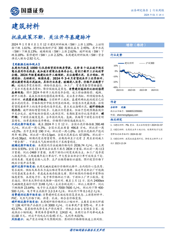 【国盛证券】【20240114】建筑材料行业周报:托底政策不断,关注开年基建脉冲-17页