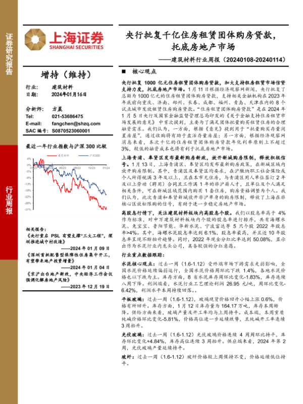 【上海证券】【20240116】建筑材料行业周报:央行批复千亿住房租赁团体购房贷款,托底房地产市场-13页
