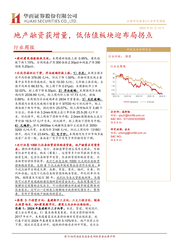 【华西证券】【20240114】建材建筑行业周报:地产融资获增量,低估值板块迎布局拐点-18页