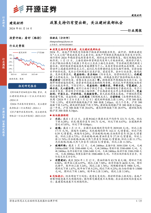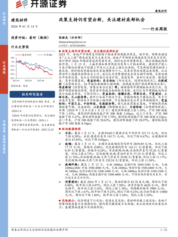 【开源证券】【20240114】建筑材料行业周报:政策支持仍有望出新,关注建材底部机会-25页