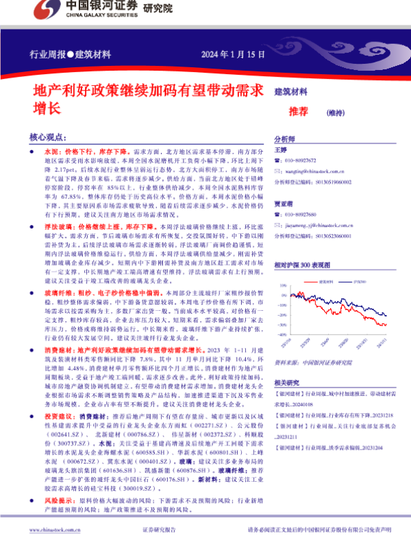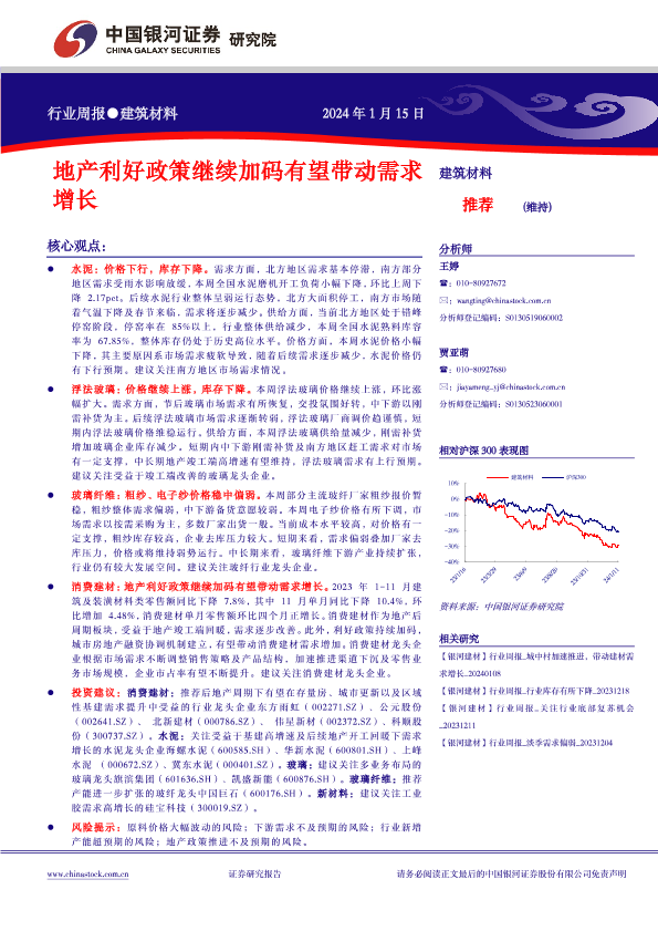 【银河证券】【20240115】建筑材料行业周报:地产利好政策继续加码有望带动需求增长-12页