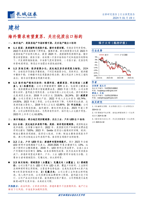 【长城证券】【20240119】建材行业深度报告:海外需求有望复苏,关注优质出口标的-26页