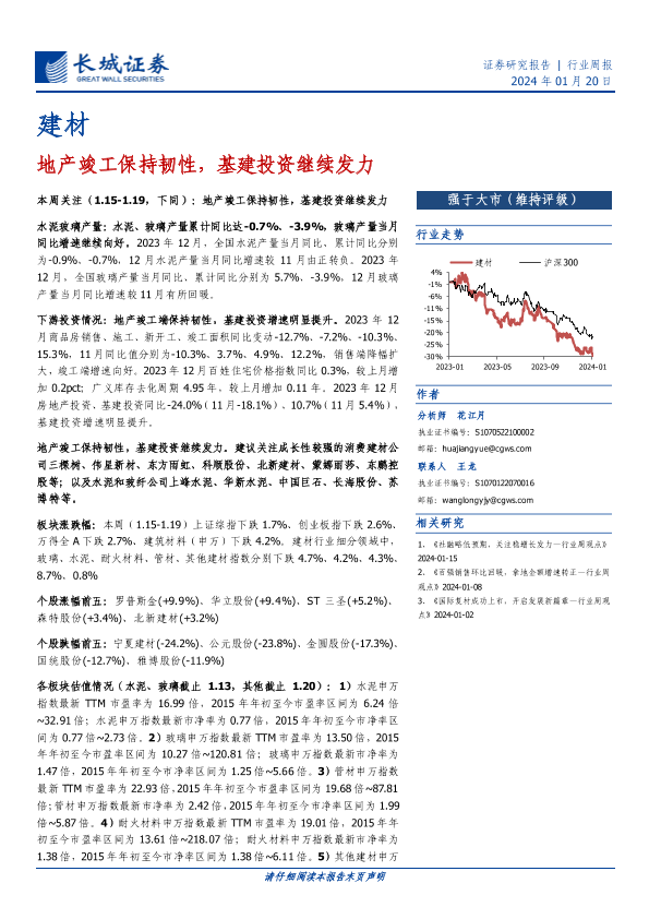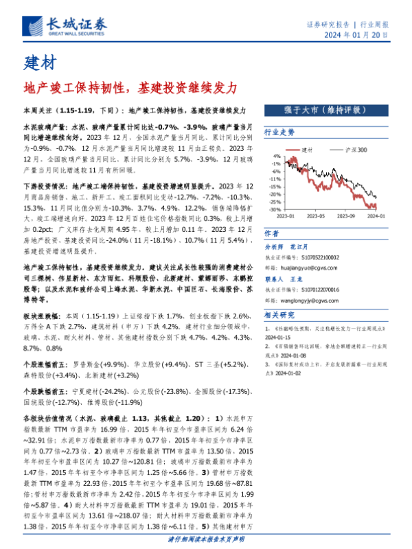【长城证券】【20240120】建材行业周报:地产竣工保持韧性,基建投资继续发力-19页
