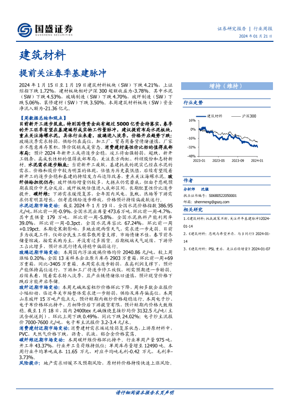 【国盛证券】【20240121】建筑材料行业周报:提前关注春季基建脉冲-16页