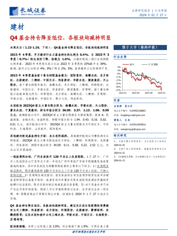 减持 基金持仓 建材行业 水泥 玻璃