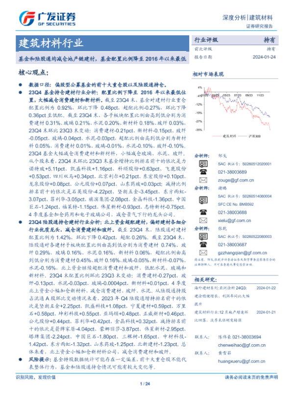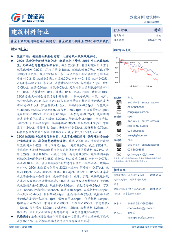 【广发证券】【20240124】基金和陆股通均减仓地产链建材,基金配置比例降至2016年以来最低-24页