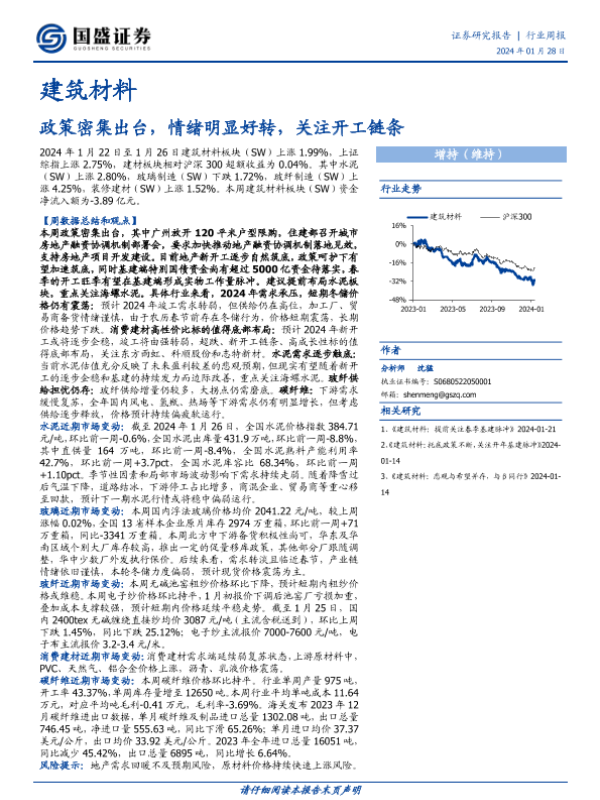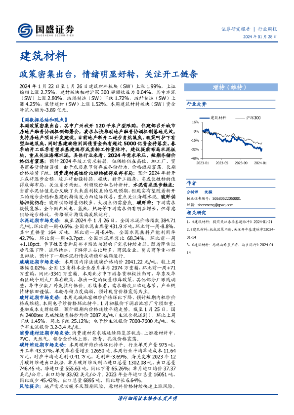 【国盛证券】【20240128】建筑材料行业周报:政策密集出台,情绪明显好转,关注开工链条-17页