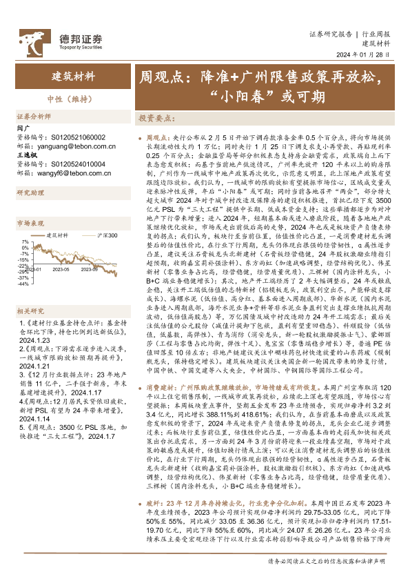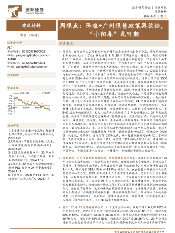 【德邦证券】【20240128】建筑材料周观点:降准+广州限售政策再放松,“小阳春”或可期-29页