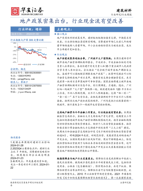 【华安证券】【20240130】建筑材料行业周报:地产政策密集出台,行业现金流有望改善-22页