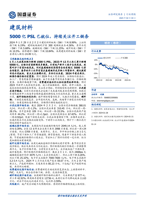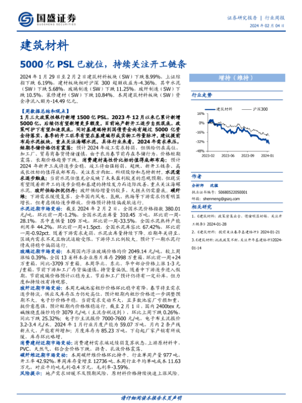 【国盛证券】【20240204】建筑材料行业周报:5000亿PSL已就位,持续关注开工链条-16页