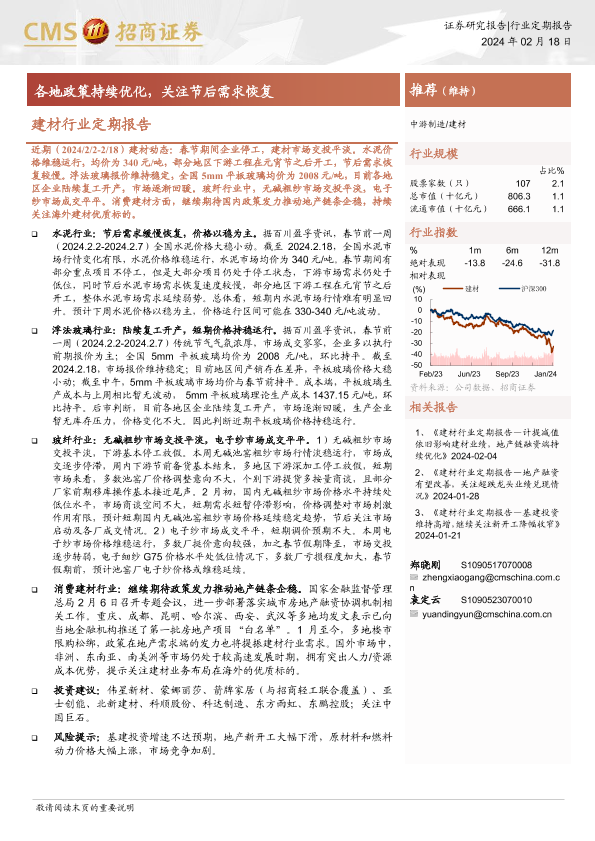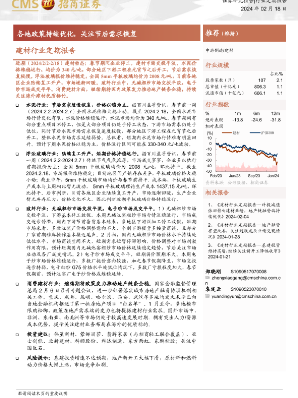 【海通证券】【20240218】建材行业定期报告:各地政策持续优化,关注节后需求恢复-24页