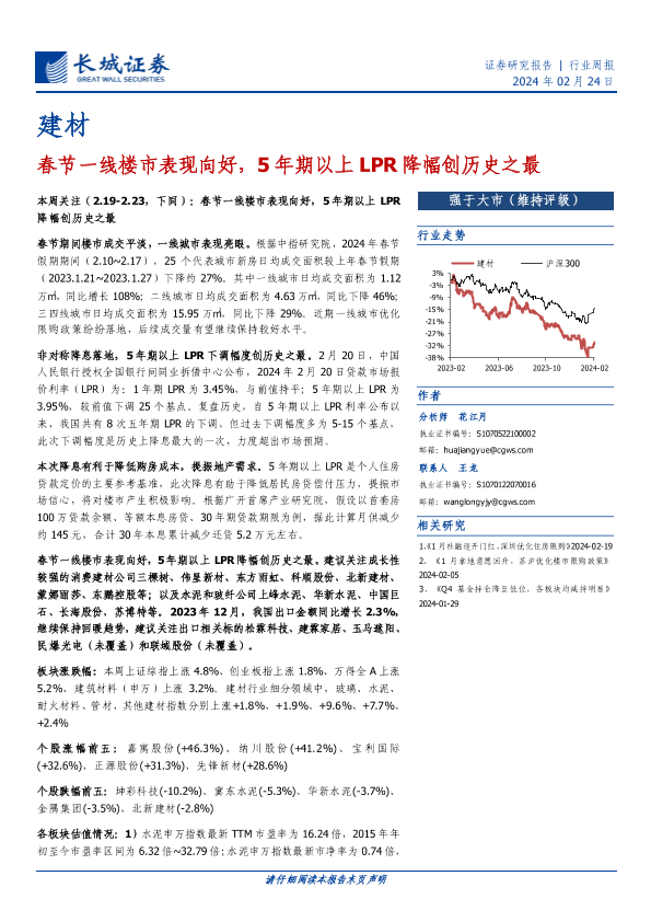 【长城证券】【20240224】建材行业周报:春节一线楼市表现向好,5年期以上LPR降幅创历史之最-17页