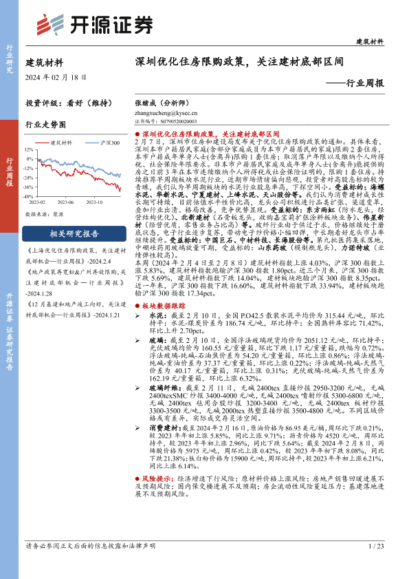 【开源证券】【20240218】深圳优化住房限购政策,关注建材底部区间-23页