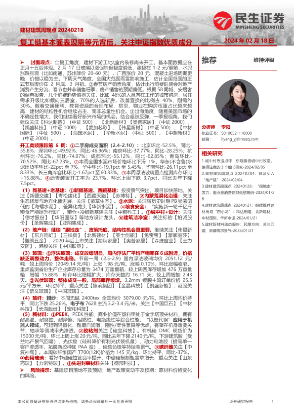 【民生证券】【20240218】建材建筑周观点:复工链基本面表现需等元宵后,关注中证指数优质成分股-22页