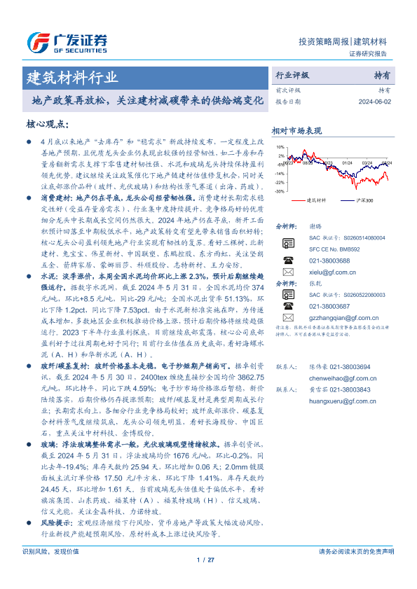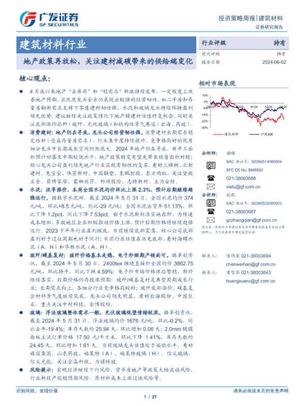 【广发证券】【20240602】建筑材料行业投资策略周报:地产政策再放松,关注建材减碳带来的供给端变化-27页
