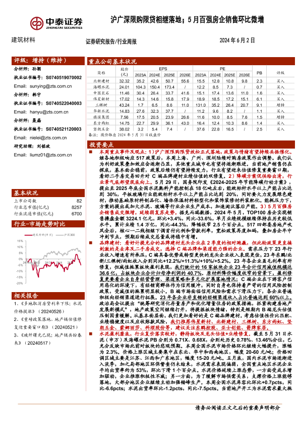【中泰证券】【20240602】沪广深限购限贷相继落地;5月百强房企销售环比微增-19页