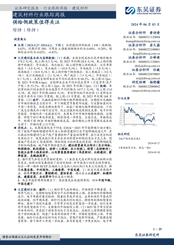 【东吴证券】【20240603】建筑材料行业跟踪周报:供给侧政策值得关注-25页