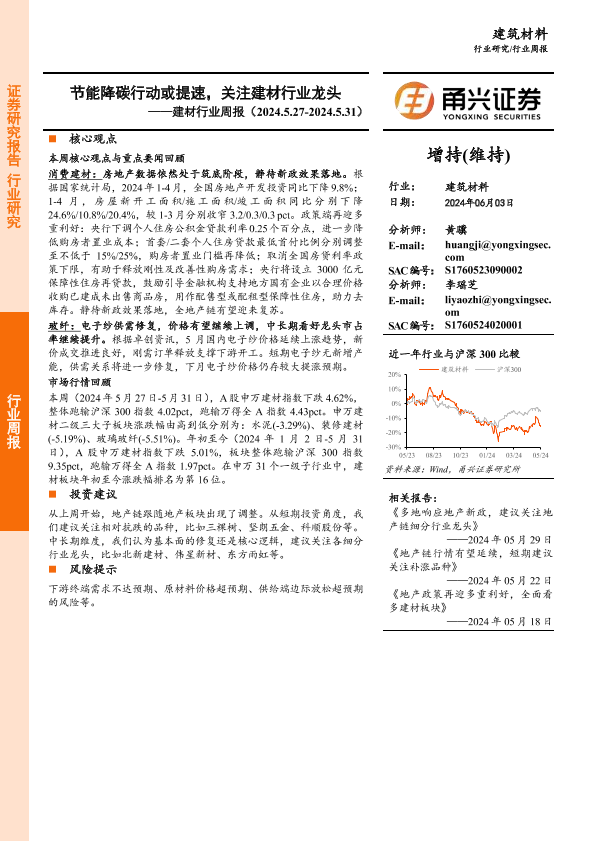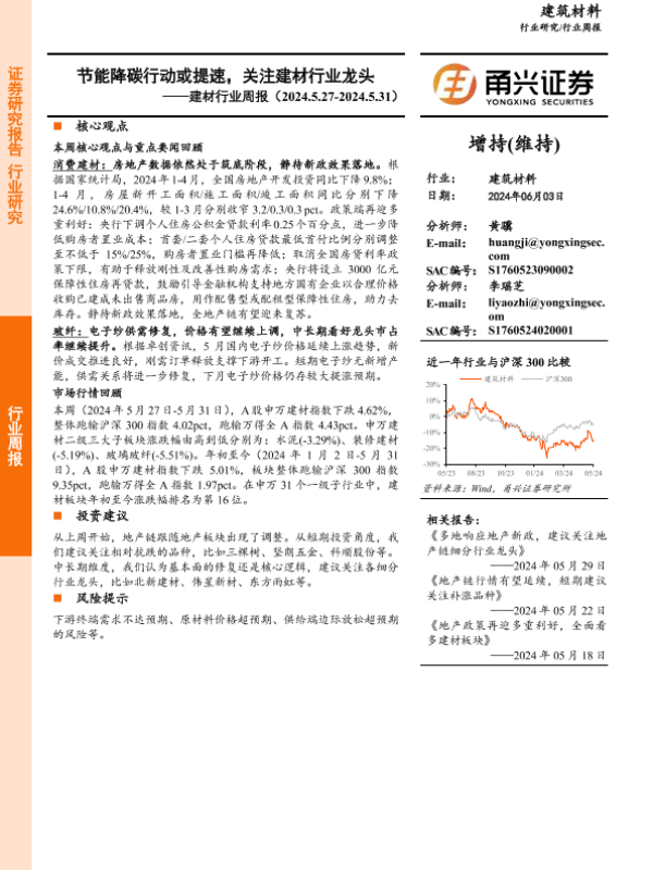 【甬兴证券】【20240603】建材行业周报:节能降碳行动或提速,关注建材行业龙头-17页