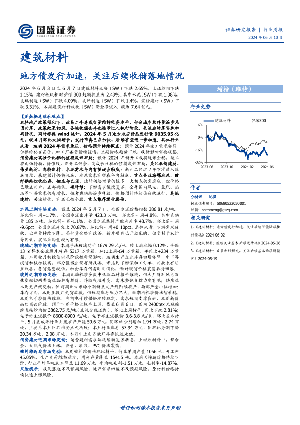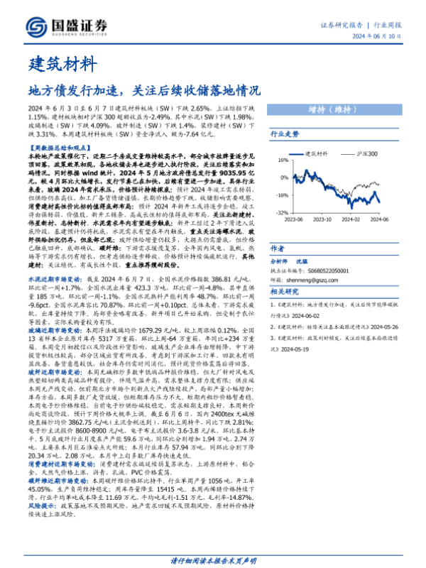 【国盛证券】【20240610】建筑材料行业周报:地方债发行加速,关注后续收储落地情况-15页