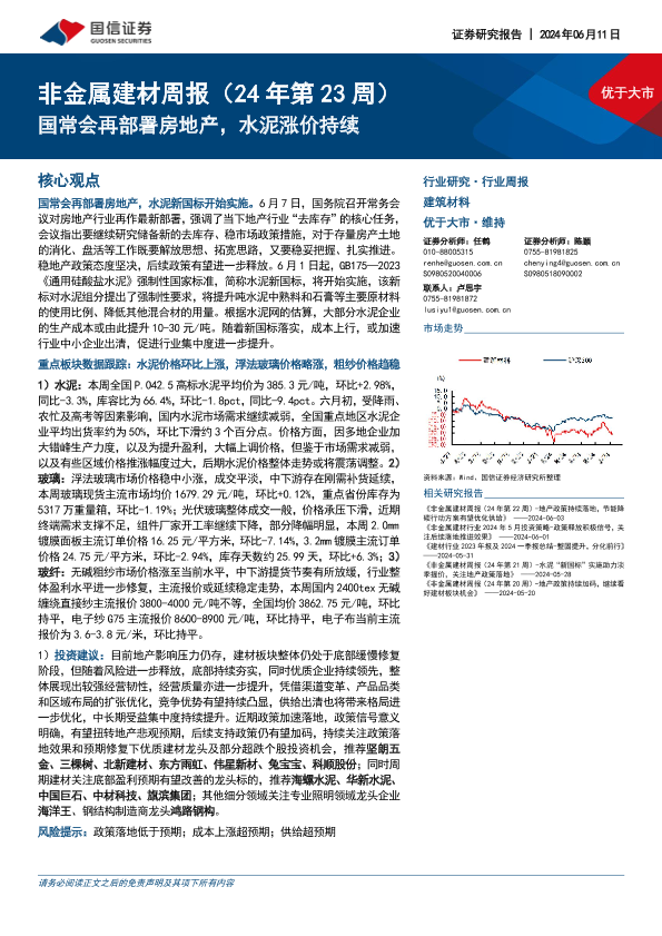 【国信证券】【20240611】非金属建材周报:国常会再部署房地产,水泥涨价持续-19页