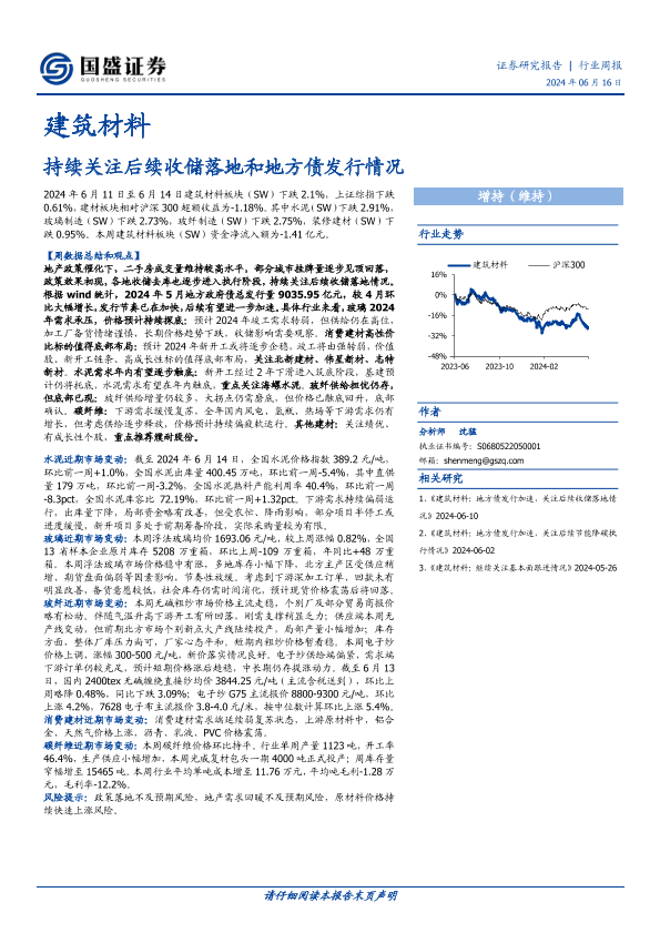 【国盛证券】【20240616】建筑材料行业周报:持续关注后续收储落地和地方债发行情况-15页