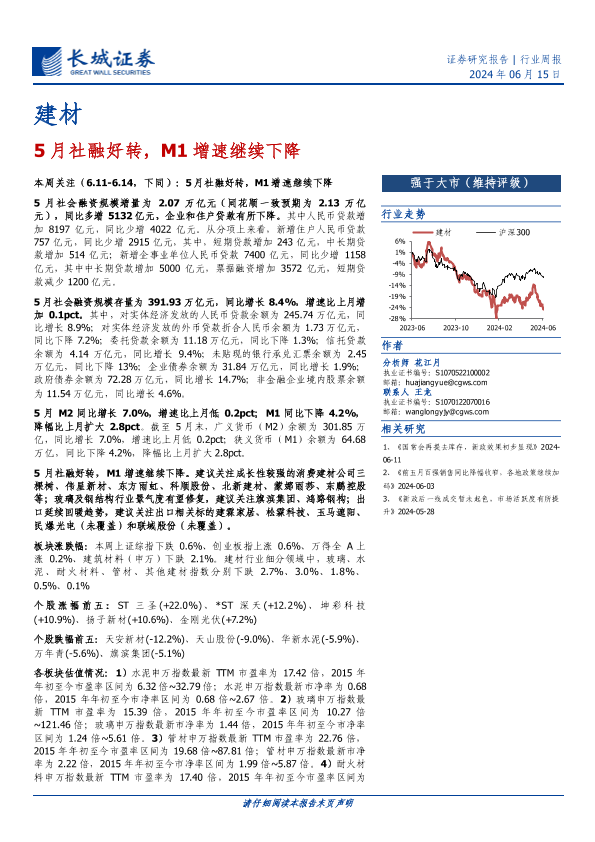 M1增速 出口回暖 建材行业 消费建材 社融规模