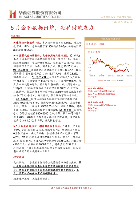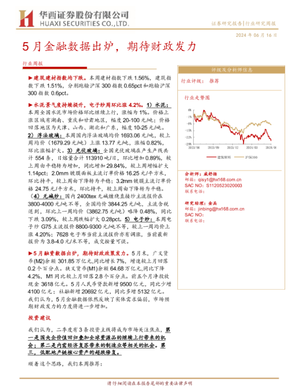【华西证券】【20240616】建筑材料行业周报:5月金融数据出炉,期待财政发力-20页