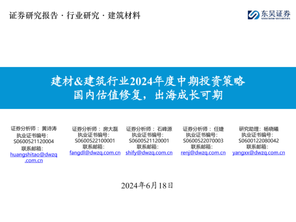 【东吴证券】【20240618】建材&建筑行业2024年度中期投资策略-21页